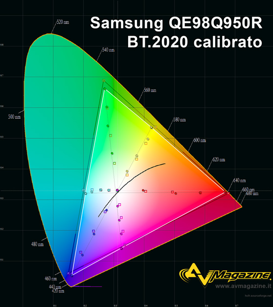 Nonostante il ridotto tempo a disposizione, abbiamo effettuato le rilevazioni sia in modalità "fuori-dalla-scatola" che dopo una rapida calibrazione, per verificarne le prestazioni immediate e avere un'idea delle possibilità. Considerando il costo di un prodotto del genere, è da pretendere come minimo un servizio di calibrazione estremamente accurato da parte dell'installatore. Partiamo dalle rilevazioni in REC BT.709, quindi con segnali in alta definizione.