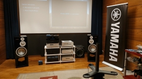 Come elettroniche, oltre al Digifast Multimedia ho utilizzato il nuovo pre-decoder Yamaha CX-A5200, un finale multicanale Yamaha MX-A5000 per i diffusori surround e Atmos e un finale McIntosh per il centrale e i due frontali che erano dietro allo schermo. Per la parte stereofonica avevamo un lettore Yamaha CD-S3000, una coppia di diffusori Yamaha NS-5000, oltre a pre e finale C-5000 ed M-5000, questi ultimi due in forma prototipale, presentati a Berlino a settembre, ascoltati per la prima volta a Rimini Hi-End lo scorso settembre e presentati da Matteo Franciullo, Product e Marketing Specialist di Yamaha nel breve video che potete osservare qui in basso.