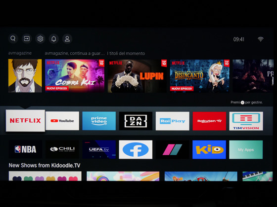 App: Netflix, Prime Video, YouTube, Rakuten, Rai Play, DAZN, Chili, TIM Vision, Infinity