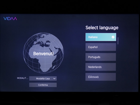 Il sistema operativo è l'ottimo VIDAA 4.0 che abbiamo già apprezzato nel laser TV che abbiamo testato in questo articolo. I menu che guidano alla prima installazione sono ben fatti e 'amichevoli' e l'avvio delle applicazioni è rapido e senza problemi. Segnaliamo la presenza di Netflix, Prime Video, Youtube, DAZN, Rakuten TV oltre a Rai Play, Chili, TIM Vision e Infinity. Manca all'appello Disney+ e qualche altra applicazione per streaming di qualità come la Digital Concert Hall dei Berliner.