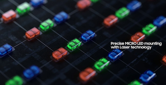Samsung non ha fornito indicazioni sulle dimensioni dei MicroLED ma dovrebbero essere inferiori a 100 micrometri, quindi veri e propri MicroLED. Solitamente si classifica come Mini LED un diodo con dimensioni comprese tra 200 e 100 micrometri e MicroLED quelli più piccoli di 100 micrometri. I diodi blu e verdi sono al nitruro di gallio (GaN), un semiconduttore scelto perché presenta vari vantaggi tra cui la possibilità di raggiungere un’elevata luminosità. I MicroLED rossi sono invece basati su fosfuro di alluminio e gallio indio (AllnGaP), una soluzione spesso abbinata ai LED perché fornisce un’emissione di luce molto stabile per lunghi periodi di tempo.