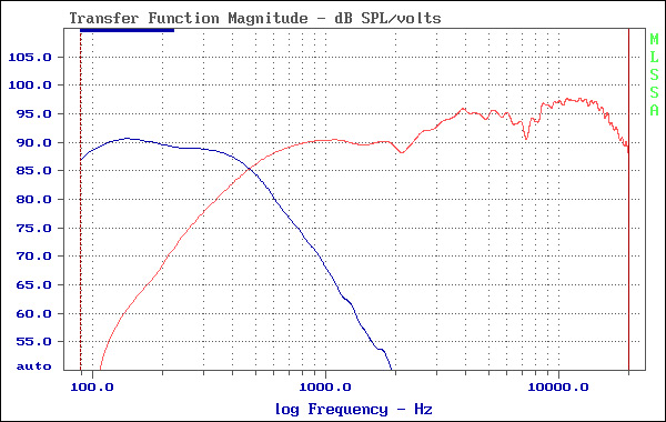 Come possiamo vedere dalla risposta acustica dei componenti sembrerebbe che in effetti l’incrocio sia ad oltre 450 Hz. Va notato comunque che la fase acustica tra i woofer ed il midrange in questo punto vale ben 80°.