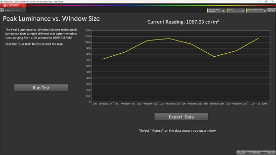 La capacità dinamica è straordinaria e la massima luminanza in funzione dell'area utilizzata per il segnale test non scende mai al di sotto dei 700 NIT, con il picco di 1069 NIT condiviso sia dall'area del 10% sia dall'intera superficie del pannello.