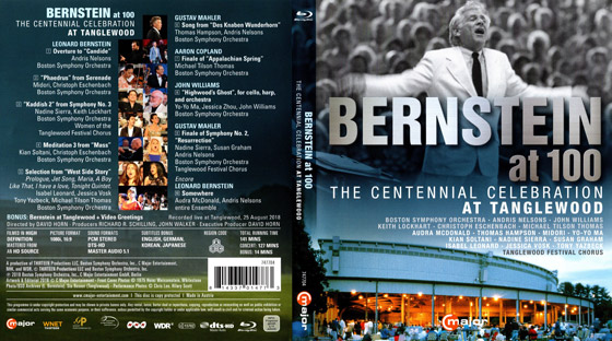 Sempre negli Stati Uniti ci trasferiamo in Massachusetts, a Tanglewood “una località che include vari spazi per musica presso le città di Lenox e Stockbridge nelle Berkshire Hills, nel Massachusetts occidentale, sede estiva della Boston Symphony Orchestra dal 1937, anche sede di tre scuole di musica: il Tanglewood Music Center, il Days in the Arts ed il Boston University Tanglewood Institute”, per omaggiare il grande Leonard Bernstein, con Bernstein at 100, The centennial celebration at Tanglewood, il cui arrivo ho dovuto attendere quasi un mese e mezzo, forse anche a causa della Brexit. Dirò subito che ne vale al pena. La Boston Symphony Orchestra, coadiuvata da musicisti di tutto il mondo (c’è anche il "violon-cello" del mio adorato Yo-yo ma) è diretta da conduttori di orchestra diversi, ma il brano iconico Maria, tratta da West Side Story è di competenza di Michael Tilson Thomas (MTT), la cui serie (per lo più disponibile in blu-ray) Keeping Score, con la San Francisco Symphony (SFS), trovo imperdibile anche solo per la qualità di incisione.