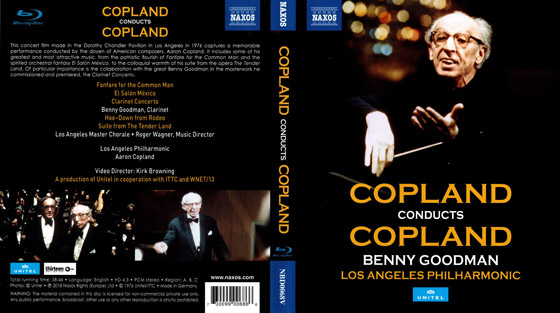 A questo ultimo proposito, anzi, per avere anche solo una idea di cosa parlo, invito ad ascoltare l’estratto di un brano di Copland registrato divinamente e contenuto nel Blu-ray Disc 'The sound of high definition' della Dolby (ho cercato a lungo e senza successo il relativo Blu-ray Disc da cui suppostamente era stato estrapolato) o, per una visione più ampia dei suoi capolavori musicali, il BD Copland dirige Copland, con audio stereo e video upscalato (molto) ma che si riferisce ad un concerto eseguito quasi mezzo secolo fa, nel 1976, con la Los Angeles Philharmonic e un tale Benny Goodman al clarinetto: i music addicted degli Emerson, Lake and Palmer di Fanfare for the Common Man (Works vol. 1) e di Hoe-down (Trilogy) sono avvertiti!