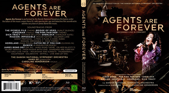 Sempre rimanendo nella nostra bella Europa, torniamo in Danimarca, a Copenhaghen, per ascoltare un altro blu-ray della DSNO, il recentissimo Agents are forever. Il buon livello qualitativo dell'orchestra viene sublimato da un'esecuzione di pregio, da un'ottima ripresa audio e dalla gustosa spettacolarizzazione dei vari brani, che inizia con l'autoironico direttore Hans Ek che - in qualche modo anche sconfessando l'indispensabilità del suo operato - proprio all'inizio del concerto viene “fatto fuori” da un cecchino e che si accascia esanime ai piedi del podio per l'intera durata del primo brano, lasciando apparentemente l'orchestra in balìa di se stessa proprio con il pezzo d’apertura, il tema di James Bond tratto da Dottor No (John Barry).