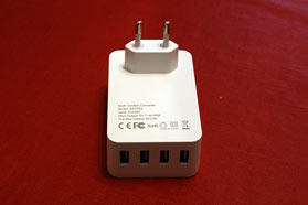 Per il test abbiamo collegato il DUT ad una presa di corrente con tensione stabilizzata a 230V, con diversi carichi collegati in quattro configurazioni differenti, ovvero da una a quattro porte collegate contemporaneamente. La tesione erogata dal DUT parte da 5,19 Volt con assorbimento nullo per scendere progressivamente fino a 4,76 Volt con assorbimento di 2,28 Ah (il massimo del nostro attuale sistema di misura). Con assorbimento di 1,5 Ah, la tensione è di 5 Volt. Con tutte le prese USB sotto carico, la corrente massima erogata è stata in totale di 3,82 Ah, con tensione media pesata di 4,96 Volt (massima di 5,09 e minima di 4,89 Volt), quindi solo leggermente al di sotto rispetto a quanto dichiarato dal costruttore. Nelle condizioni di massimo carico, dopo qualche minuto la temperatura del DUT si stabilizza e non sale mail al di sopra dei 48°C. Se consideriamo la quotazione di 14,99 Euro, spedizione inclusa su Amazon.it, possiamo considerare il rapporto qualità prezzo particolarmente elevato.