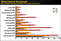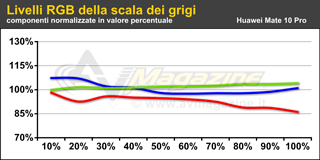 La colorimetria non è molto precisa ed è caratterizzata da sensibili deviazioni tra alte luci e basse luci. D'altra parte, visto che non è poi così facile trovare smartphone con ottima colorimetria, il Mate 10 Pro si posiziona comunque nella parte più alta della classifica, subito dietro i "mostri sacri" Lumia 850 e Samsung S8.