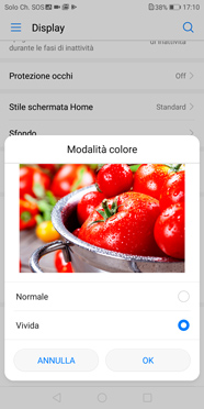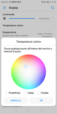 Le impostazioni colore selezionabili sono otto e sono la combinazione di due modalità colore ("Normale" e "Vivida") con tre diverse temperature colore ("Predefinita", "Calda" e "Fredda"), più una personalizzata che purtroppo non può essere salvata e si perde se si torna per un attimo ad una delle tre predefinite. Le differenze di luminanza tra le quattro modalità sono minime; cambiano invece i valori del gamma se si cambia la luminanza dello schermo, più o meno come avevamo già visto con il Samsung S8.