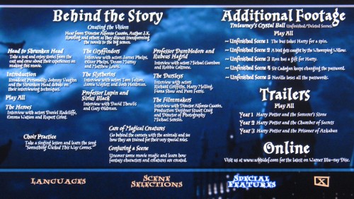 In tema di contenuti speciali il Blu-ray ricalca l'edizione in DVD e purtroppo non cambia nemmeno la qualità video poiché tutti gli extra sono proposti a definizione standard (la stessa del DVD Video) con audio stereofonico e possibilità di sottotitoli in italiano. Molto nutrita la sezione delle interviste con la parola ai protagonisti ed ai realizzatori della pellicola, oltre che all'artefice della saga J.K. Rowling.