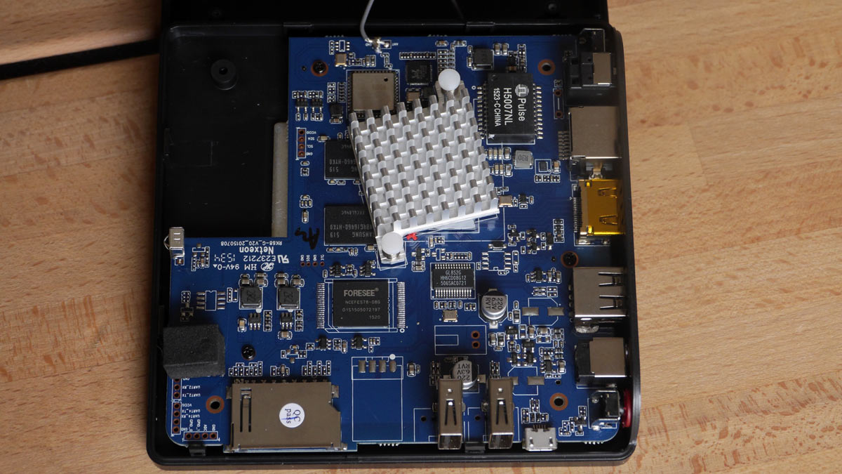 Dimensioni e peso estremamente contenute non danno una sensazione di elevata robustezza. Al contrario, la costruzione si è rivelata solida e accurata, con quattro viti nascoste sotto i piedini in gomma e un'interno razionale, con un generoso dissipatore sul main chip OctaCore RK3368, che dovrebbe essere in grado di decodificare video a risoluzione Ultra HD 4K fino a 60p ma che, in questo caso, viene limitato fino a 30p. All'interno, ancorata al coperchio superiore, c'è l'antenna dual-band per il sistema wireless che si è rivelato molto sensibile, al pari della maggior parte dei laptop di ultima generazione.