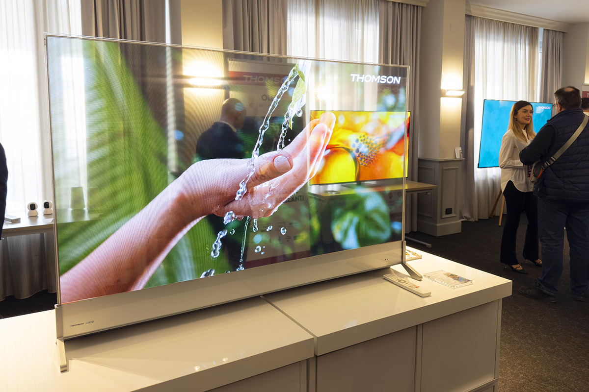 Come scritto in apertura, la gamma Thomson non include solo televisori ma anche altre tipologie di prodotti. Tra questi spiccano sicuramente i LUCID OLED, schermi trasparenti pensati principalmente per applicazioni di tipo commerciale. Lo scenario d’uso ideale prevede il posizionamento di prodotti od oggetti di interesse dietro lo schermo, in modo da poter sovrapporre immagini e/o informazioni per creare effetti di realtà aumentata.
