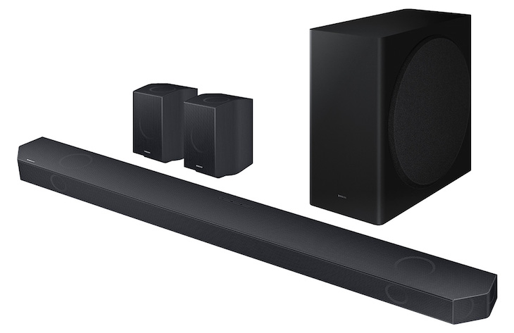 Q990D si posiziona al vertice e integra una configurazione a 11.1.4 canali con il corpo centrale, due satelliti posteriori e un subwoofer wireless. In tutto sono presenti 22 altoparlanti con un centrale, speaker orientati verso l’alto per Dolby Atmos e DTS:X e altri trasduttori posti lateralmente per espandere il campo sonoro.