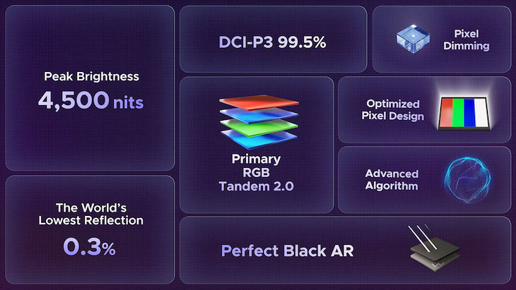 Per quanto riguarda i pannelli, l’architettura di base non cambia. Su tre serie vengono impiegati quelli di quarta generazione, i Primary RGB Tandem; sui top di gamma arriva la versione aggiornata Primary RGB Tandem 2.0, ribattezzata Tandem WOLED per differenziarla dagli schermi dedicati ai monitor.