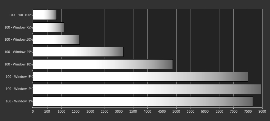 Molto più interessanti i valori che vengono raggiunti con impostazioni predefinite di qualità elevata, come ad esempio "Cinema" e Filmmaker" e anche con aree dello schermo molto piccole, anche dell'1%, un aspetto che può contare su ben 20.736 zone, con area di una singola zona che vale meno dello 0,005% di quella totale. Si tratta di aree di appena 40.000 pixel che permettono al TV di arrivare fino a livelli di luminanza molto elevati su zone molto piccole e senza troppi rischi di causare aloni. Per una verifica di questo aspetto dovrete aspettare la nostra analisi in ambiente completamente oscurato.