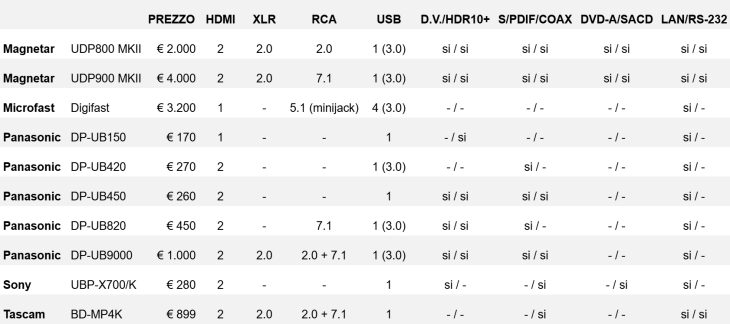 Lista dei lettori UHD-Blu-ray 4K in vendita