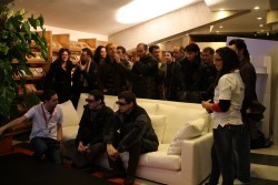 Mentre si lavora ancora al set-up stereoscopico, il pubblico di giornalisti e opinion leader è già arrivato e si procede alla registrazione e all'ingresso in un'area riservata. In attesa dell'ingresso in sala, a corollario di un catering davvero eccellente, il pubblico può osservare in anteprima un prototipo del nuovo TV LCD Sony 3D che arriverà nei negozi il prossimo giugno.
