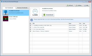 I file audio possono essere scaricati manualmente oppure con il download manager di Linn