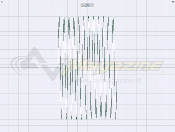 Il rischio maggiore lo corre il tweeter che emette le frequenze da 2000 Hz fino al limite della misura, e che in genere è dotato di una bobina mobile di dimensioni ridotte. Ad una analisi col segnale sinusoidale continuo a 20 Watt credo che pochi tweeter supererebbero l’esame senza rompersi. Si adotta allora un particolare segnale, chiamato “burst”, fatto di una decina di cicli di sinusoide seguiti da un periodo di silenzio, per far raffreddare la bobina mobile. La durata del burst è inversamente proporzionale alla frequenza, così che maggiore è la frequenza da misurare e minore è la durata “sotto sforzo” della bobina mobile. Nel nostro set di misura la misura a burst viene effettuata sulla distorsione armonica con segnali pre-registrati e dotati di un contenuto armonico inferiore di ben tre ordini di grandezza alla più bassa distorsione armonica mai misurata. Anche l’amplificatore di misura ha una distorsione estremamente contenuta. In Figura 9 potete vedere uno dei burst della durata di 50 millisecondi (50 millesimi di secondo) che viene usato per questo test in vece del segnale continuo. Riducendo la finestra dell’analizzatore a questo intervallo ridottissimo inganniamo lo strumento facendogli credere che il segnale sia continuo. Il segnale generato ovviamente è “zero crossing” ovvero che inizia e termina quando l’ampiezza del segnale vale zero.