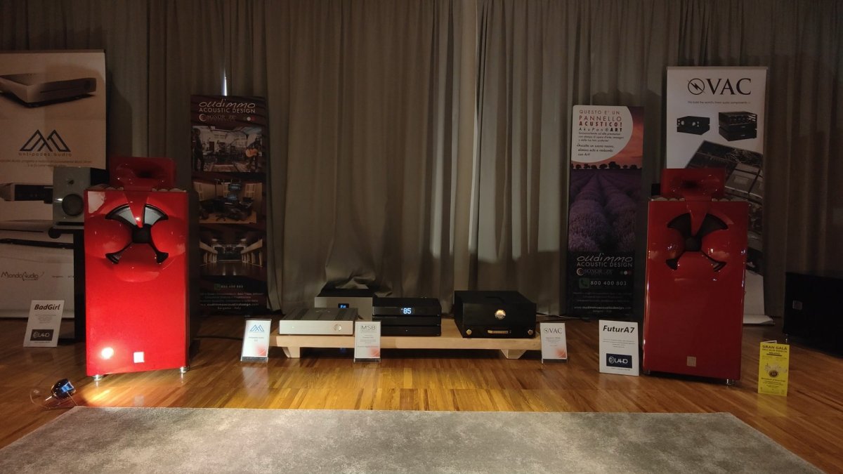 Tra le sale suonanti che abbiamo ascoltato, vi segnaliamo quella de Il Tempio con diffusori Usher e Vienna Acoustics con tre amplificatori integrati che vengono alternati con lo stesso sistema di altoparlanti Usher; oppure c'è Luxury con diffusori Raidho e numerosi diffusori Revival Audio e con elettroniche Pilium; c'è anche la sala di Lahò in collaborazione con Mondo Audio con i due sistemi ad alta efficienza Lahò con le elettroniche MSB.