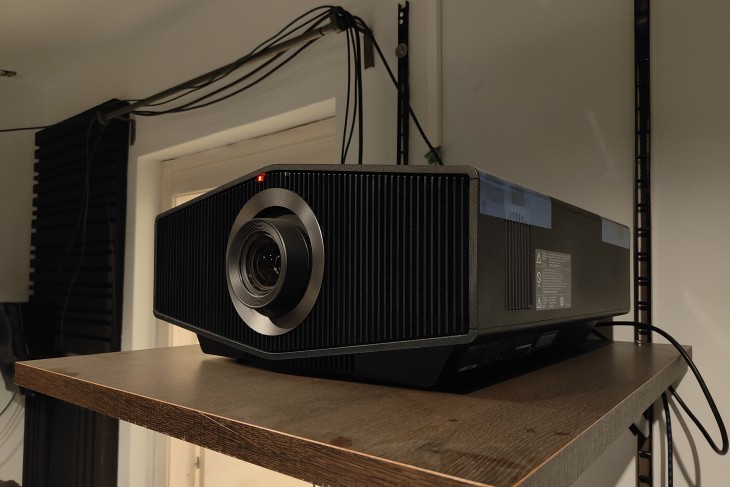 Nella sala cinema era in funzione un videoproiettore SXRD Sony VPL-XW7000ES a risoluzione nativa 4K con sorgente luminosa laser e potenza di circa 3.000 lumen (il nostro test lo trovate a questo indirizzo). Il Sony illuminava uno schermo da ben 3,2 metri di base con picco di luminanza calibrato di ben 110 NIT.