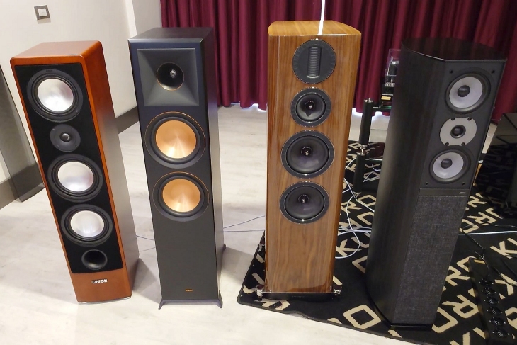 E sì, va detto che anche la psicoacustica vuole la sua parte: quando ti senti a tuo agio, ascolti meglio. In riproduzione scorrevano brani essenziali, voce e pianoforte. Una scelta intelligente: pochi strumenti, nessun effetto speciale, solo musica. I diffusori erano di dimensioni contenute, eleganti nella forma, molto curati esteticamente: erano i bookshelf Thrax Audio (brand bulgaro). Piccoli, ma non timidi. Erano alimentati da Kora PR 140 e Keces S300+ insieme a una lunga catena di diverse sorgenti tra lettore CD, DAC, etc. Ci siamo posizionati al centro sala perché qui il focus era finalmente sull’ascolto. La scena si apriva in modo credibile, con una buona organizzazione spaziale.