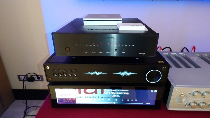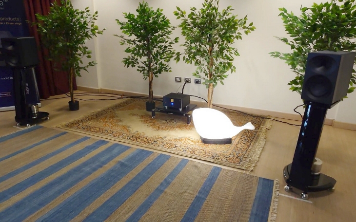 Più che un ascolto concentrato è stata una vetrina estesa: l'ambiente, non trattato con elementi passivi e subito occupato dai primi visitatori, era poco predisposto a un ascolto aulico, ma il piacere non è mancato. Girare per la sala osservando i prodotti a 360° e scrutandone i più piccoli dettagli, le finiture e la solidità è stata una piacevole esperienza visiva e tattile, oltre che uditiva.