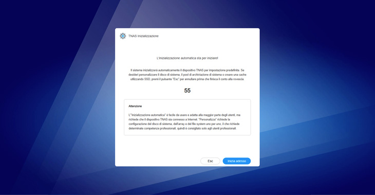 In realtà un utente esperto può decidere di configurare tutti i parametri del NAS a piacimento, come tipologia del RAID, file system da utilizzare, personalizzazione del disco di sistema e del pool di archiviazione, creare una cache tramite SSD, etc. Questa volta abbiamo deciso di seguire la procedura semplificata di installazione con le impostazioni predefinite. Ovviamente non ci è stato permesso di configurare assolutamente nulla e alla fine del processo abbiamo ottenuto un pool di archiviazione nella configurazione RAID proprietaria di Terramaster TRAID e file system BTRFS, progettato per la gestione dei dati e la tolleranza agli errori, che offre funzionalità avanzate come snapshot, integrità dei dati tramite CRC, compressione trasparente e clonazione.