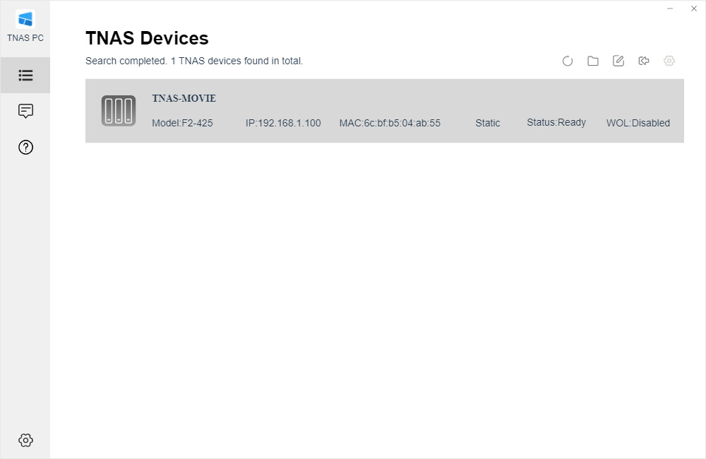 Collegati l'alimentazione e il cavo di rete possiamo procedere all'installazione del sistema operativo vero e proprio. L’installazione di TOS 6.0 sul TerraMaster F2-425 avviene in maniera guidata: tramite il software TNAS for PC liberamente scaricabile dal sito del produttore, effettuiamo un scansione della rete per trovare il nostro NAS di cui al momento non conosciamo l'indirizzo IP che è stato assegnato dal nostro router. Una volta individuato il NAS procediamo con l'installazione vera e propria grazie all'interfaccia web: è sufficiente accedere al NAS da browser, caricare il pacchetto firmware e seguire la procedura automatizzata. Il sistema provvede in autonomia a configurare i servizi di base, lasciando all’utente solo la scelta dei parametri principali. L’intero processo richiede pochi minuti e non richiede competenze avanzate.