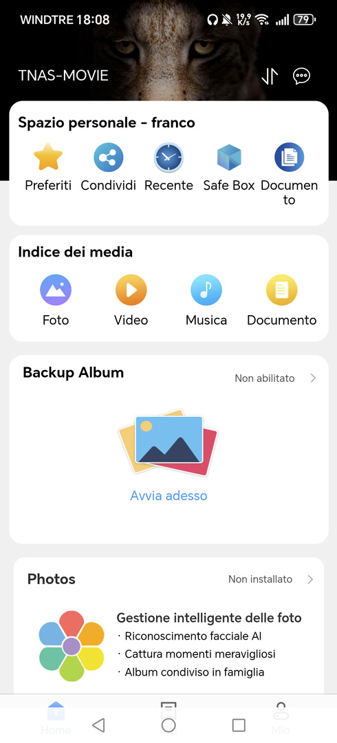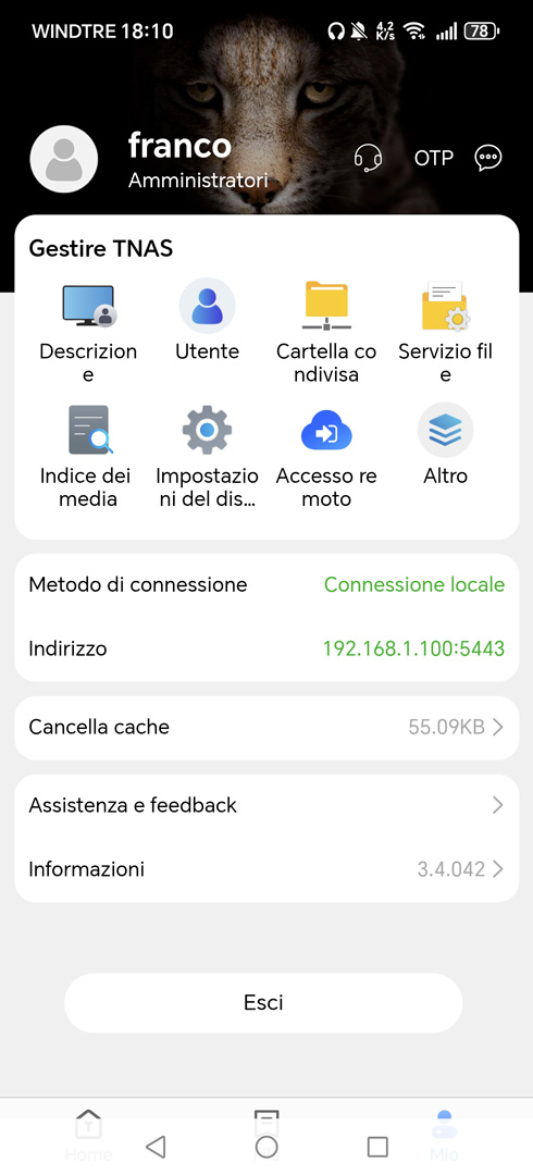 Accanto all’interfaccia web accessibile da browser, TerraMaster mette a disposizione una applicazione mobile che permette di gestire il NAS anche da smartphone e tablet, in remoto. TNAS Mobile, consente di monitorare lo stato del sistema, accedere alle cartelle condivise e gestire alcune impostazioni di base direttamente dal dispositivo mobile. Ho iniziato ad utilizzare questa app quando era ancora acerba in beta version e funzionante con TOS 4.0; posso dire che ha fatto passi da gigante rispetto a quei tempi, anche se, anche al momento, ci sono cose che potrebbero essere migliorate.
