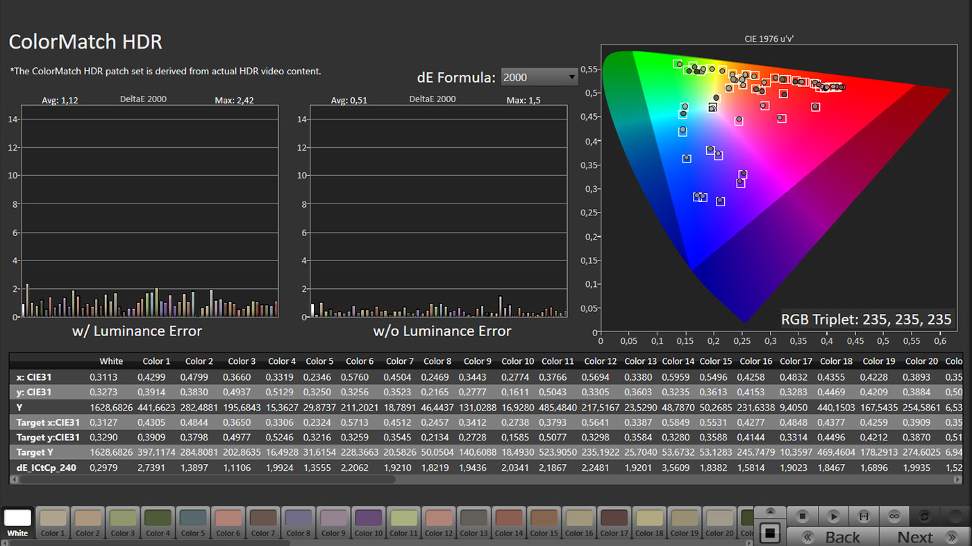 Per quanto riguarda l’accuratezza del segnale video, le misure che ho effettuato col G1 sono sempre risultate quasi perfettamente sovrapponibili con quelle del DVDO TPG e del VideoForge Pro 4K. L'analisi dei segnali video generati attraverso il software DaVinci Resolve ha pienamente confermato l'esperienza sul campo. Le discrepanze che ho riscontrato sono sempre state infinitesimali e legate all’incertezza della misura, cioè a piccolissime variazioni assolutamente normali e prevedibili.