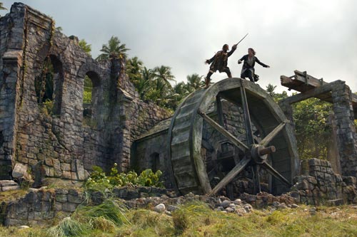 Una delle scene più riuscite del film - il duello a tre spade tra Jack Sparrow, Will Turner e James Norrington sulla gigantesca ruota di legno - è stato registrato nei dintorni di Hampstead. Il set è stato tra l'altro infestato dalle noci di cocco che improvvisamente cadevano dalle palme alte 30 metri sulla troupe, costringendo diversi membri ad indossare degli elmetti protettivi.