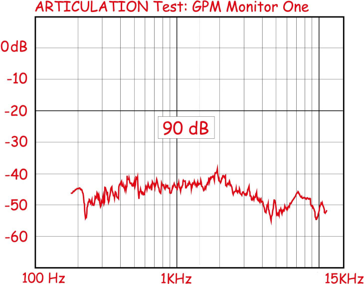Articulation Test: in questo caso la curva parte ad 85 dB ad un valore abbastanza basso, quasi -50 dB in gamma mediobassa per risalire in gamma media a circa -44 dB. Notate come il tweeter a 5000 Hz sfiori i -60 dB. All’aumentare della pressione l’andamento della curva rimane più o meno costante anche se in leggero aumento. A 95 dB siamo a cavallo dei -40 dB con un andamento molto regolare ed una discesa di altri 10 dB in gamma alta ed altissima.