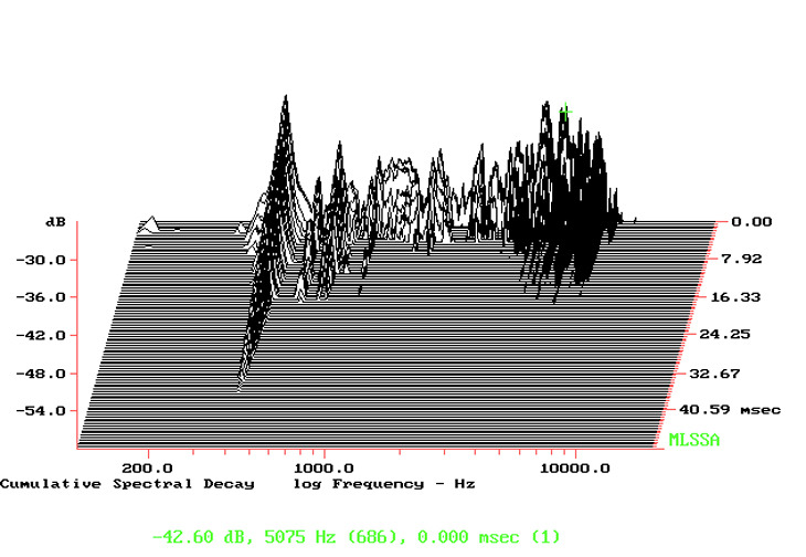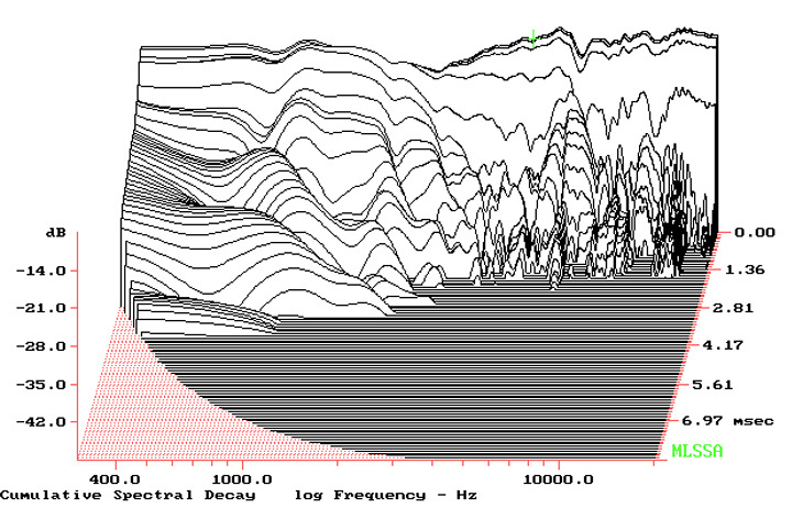 Time Energy: La leggera e costante distanza tra l’emissione del woofer e quella del tweeter conduce ad una risposta molto veloce nel decrescere, con poche esitazioni, dovute in realtà alle dimensioni del box.