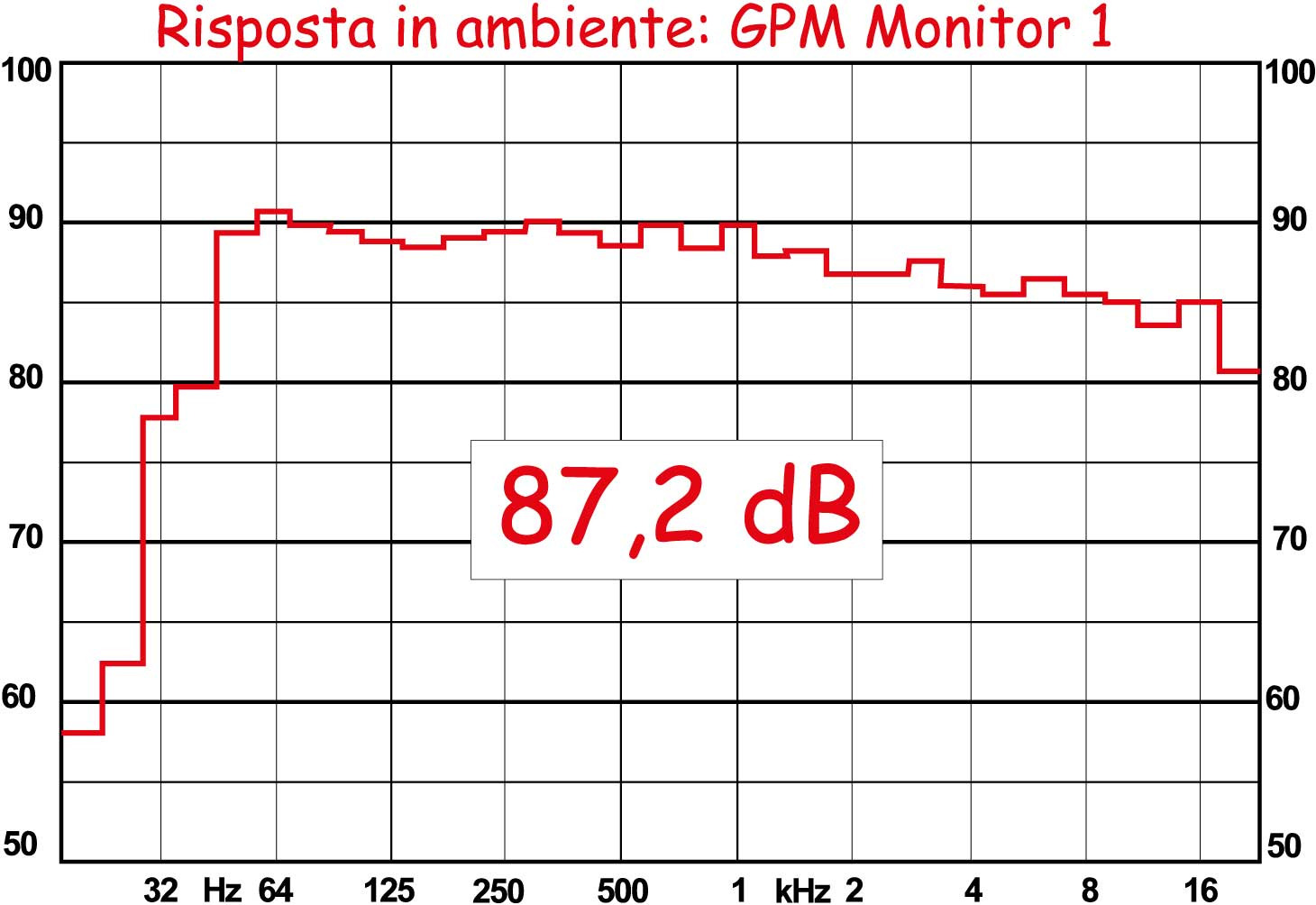 Risposta: risposta abbastanza regolare in gamma bassa e mediobassa, con le medie che presentano due ondulazioni, a 1000 e 6000 Hz. La risposta non è dritta come una riga? Me ne farò una ragione. Notate come nella misura fuori asse sia compensata la gamma medioalta rispetto alla misura in asse.