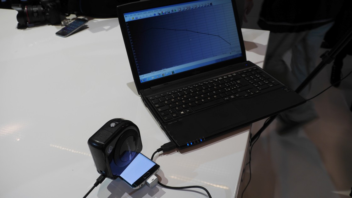 Nonostante l'altissima densità di colleghi sovra eccitati (molti dei quali armati di videocamera) ho preso subito possesso di entrambi i campioni, ho acceso il mio notebook "da battaglia", ho collegato uno spettrometro verificato in laboratorio e ho eseguito alcune misure ai due display, con risultati che non mi aspettavo. Le immagini test sono tutte in formato PNG, quindi senza errori di compressione e sono state visualizzate sia con la "galleria" che via browser (Chrome), con risultati molto simili per i due smartphone ma non identici.