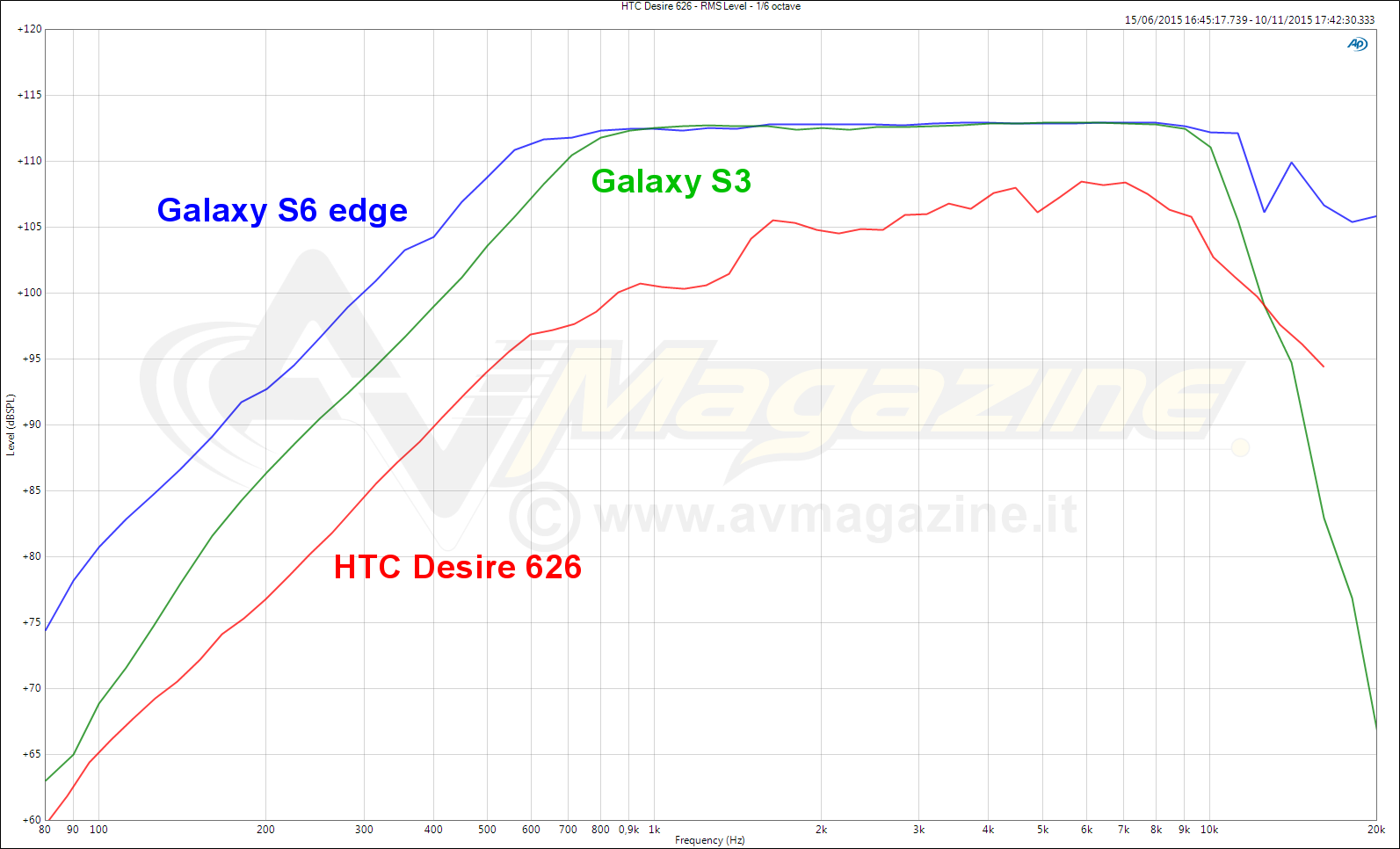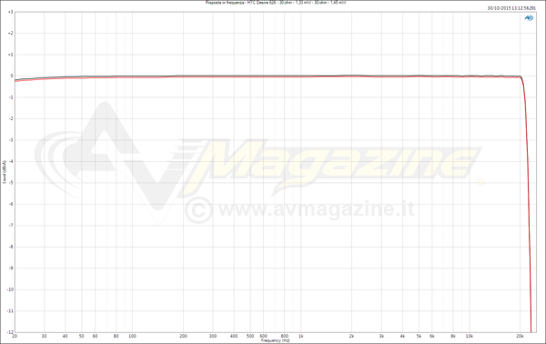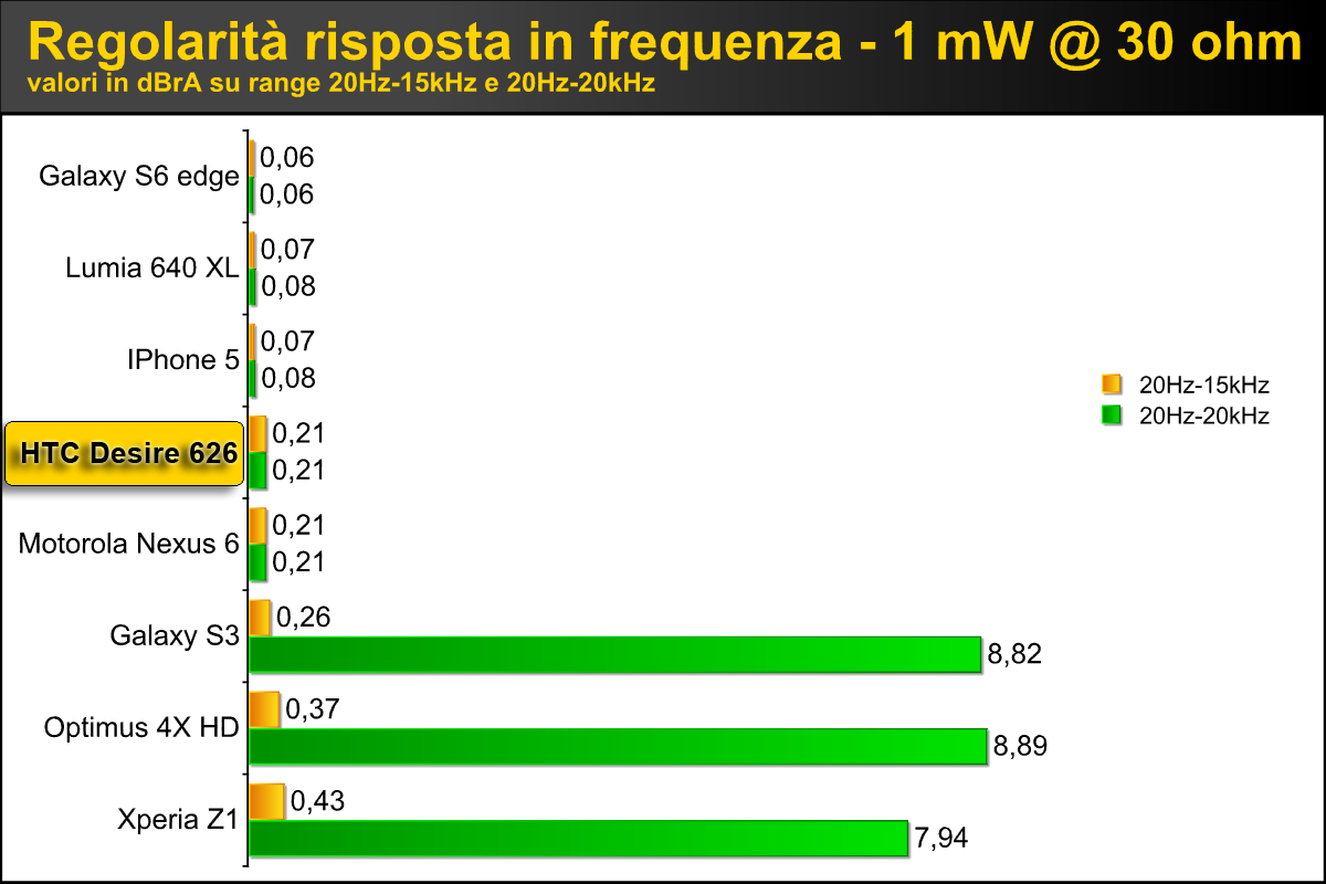 La regolarità e l'estensione in frequenza del Desire 626 è ottima e la prestazione è tra le migliori mai misurate nel nostro laboratorio.