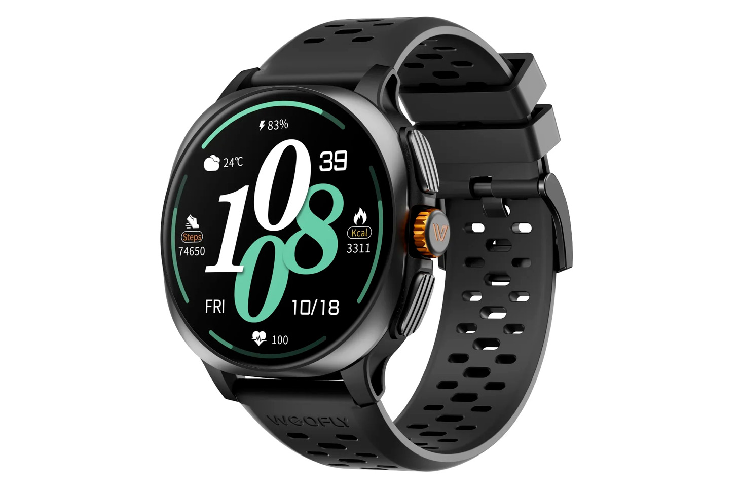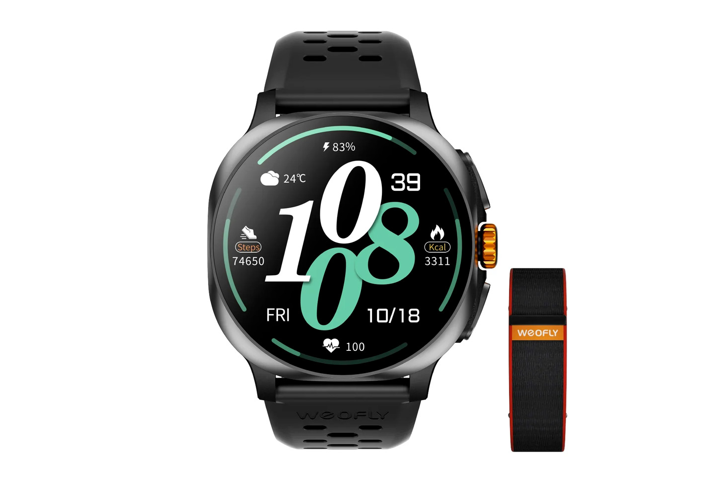 lo smartwatch di weofly con GPS, bussola, barometro, altimetro, accelerometro, giroscopio, sensori per frequenza cardiaca ed SpO2, con certificazione IP68, gestisce notifiche e telefonate direttamente dal polso, ha un app dedicata per Android e iOS e possibilità di integrazione con Strava e Google Fit
