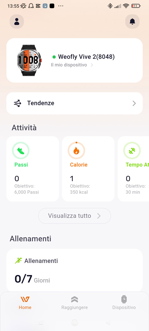 Il Weofly Vive 2 utilizza un sistema operativo proprietario, WeoFlyOS e non piattaforme general purpose come Wear OS. Questo significa che non è possibile installare app di terze parti, ma in compenso si ottengono una interfaccia più leggera e un’autonomia generalmente superiore rispetto ai sistemi “full smart”. La casa madre ci mette a disposizione una app dedicata per dispositivi Android e iOS chiamata Weofly Fitpro, che ci permette di tenere d'occhio tutte le nostre attività, i parametri biometrici ed anche regolare le impostazioni delllo smartwatch. Un elemento interessante è la sincronizzazione con Strava: collegando il proprio account dall’interno dell’app, le attività registrate dallo smartwatch possono essere caricate come allenamenti su Strava, integrandosi così con la piattaforma più diffusa tra runner e ciclisti. L’orologio può infatti collegarsi a Strava e inviare i dati di allenamento dalla app, permettendo così di sincronizzare gli allenamenti registrati dal Vive 2 con la piattaforma di Strava per visualizzare corsa, bici e altre attività.