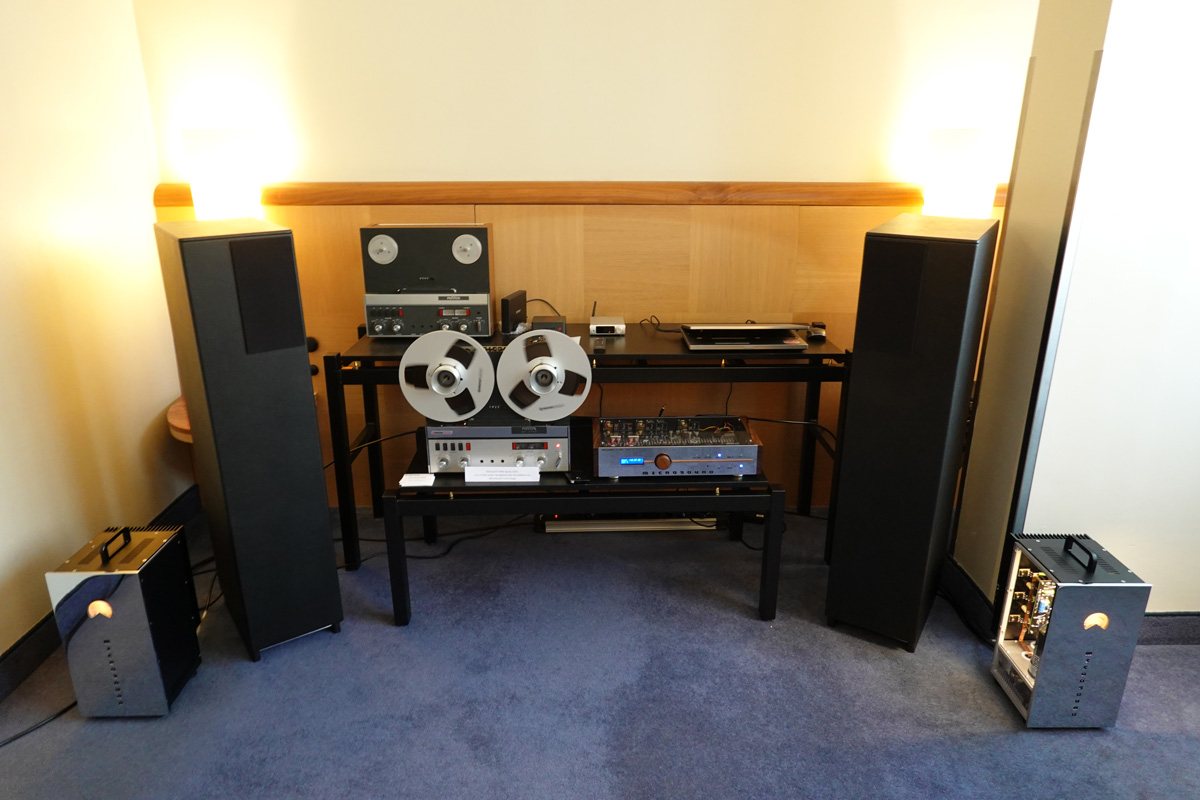 Nella prima saletta c'è un sistema di altoparlanti attivo, triamplificato con DSP, due subwoofer da 15" e due coassiali da 8", con sorgente Revox A-77 restaurato e modificato da Revoxmania in collaborazione con Microsound Technology che ha fornito anche il preamplificatore. Nella seconda saletta, un sistema completamente passivo, con diffusore da pavimento da 26x40x115 cm a due vie con woofer da 10", con accordo reflex ricavato nello zoccolo del diffusore. Anche in questa seconda sala abbiamo un registratore a bobine Revox, stavolta B-77, anche questo con restauro a cura di Revoxmania e 'modding' a cura di Microsound Technology. In più, in questa seconda sala c'è anche una sorgente digitale con musica liquida su PC, interfaccia USB North Star Design e DAC ToppingD30 Pro.