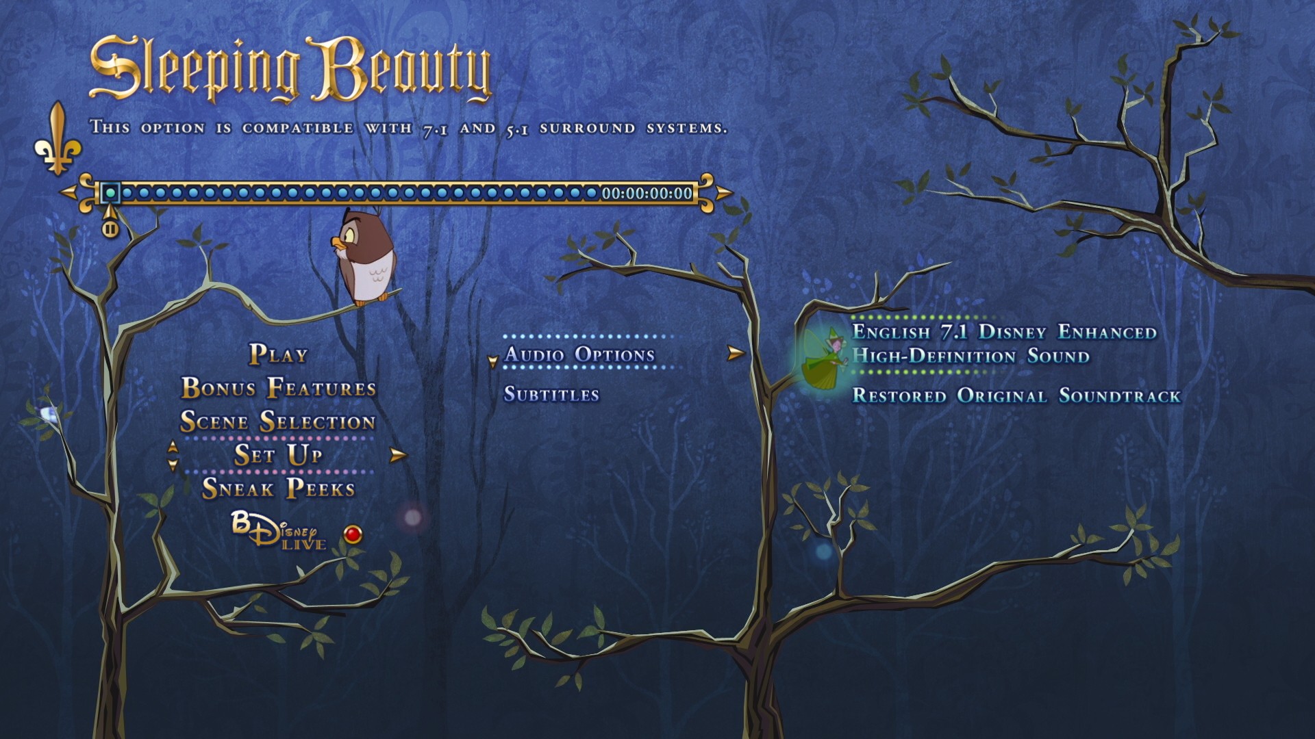 La Bella Addormentata nel Bosco è il primo classico Disney ad approdare nel formato Blu-ray grazie ad un eccellente lavoro di restauro che ripropone il formato originale 2.55:1, dona nuovo splendore ai colori originali e si arricchisce di una valanga di contenuti speciali