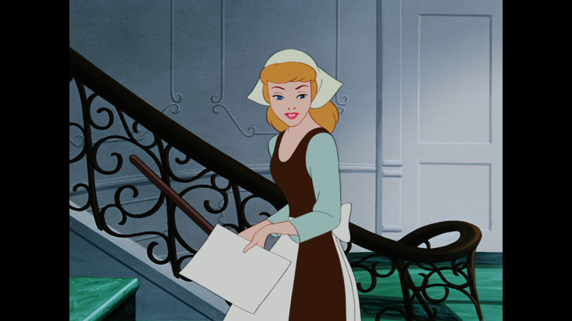 PS qui un confronto con una pellicola originale in technicolor del 1950 postata su Facebook da un'utente del nosto forum. E come si potrà vedere le linee nel vestito c'erano e si vedono (tralasciamo pure il colore dell'abito anche se sospetto che quello bianco sia l'originale visto che quando la fata lo trasforma è bianco) nonostante la bassissima risoluzione della foto. -