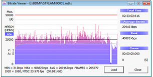 Analisi del bitrate del disco 3D (sinistra) e 2D (destra)