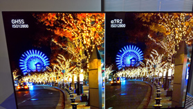 Benché la GH3 usata per fare le foto che vedete pubblicate nelle pagine di questo articolo abbia una gamma dinamica di quasi 10 stop (un po' meno in realtà), giocando con l'esposizione dovrebbe essere evidente il vantaggio in termini di dinamica per la GH5S (a sinistra) rispetto alla 7S2 (a destra): osservate il colore delle luci sugli alberi; con la GH5S il “bianco” è ancora “giallino” mentre con la Sony A7S2 è già in clipping e perfettamente bianco, il tutto mentre sulle basse luci la prestazione è praticamente sovrapponibile. Oltre alla gamma dinamica, un altro importante vantaggio rispetto alla Sony A7S2 è dato dagli effetti di “rolling shutter” piuttosto contenuti, sensibilmente inferiori rispetto alla GH5 (grazie alla risoluzione inferiore che riduce ulteriormente i tempi di lettura dei dati dal sensore) che già offriva buone prestazioni.