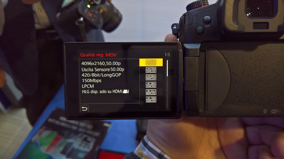 Le uniche perplessità che abbiamo riguardano la risoluzione nativa del sensore e le prestazioni in termini di risoluzione, dettaglio, moire e aliasing. Prima di tutto, nella conferenza stampa Panasonic non ha risposto alla nostra domanda sulla risoluzione nativa del sensore. Si è limitata ad indicare una risoluzione nativa di 10,2 megapixel che in realtà non ha molto senso. Non ha senso perché in modalità fotografica possiamo impostare quattro diverse risoluzioni che vedete riassunte nella tabella. Ogni risoluzione corrisponde ad un diverso angolo di campo orizzontale, con angolo di campo diagonale che rimane costante. Panasonic chiama questa caratteristica con il nome di “Multi-aspect Ratio”, che permette di ottenere sempre lo stesso angolo di campo per ogni rapporto d'aspetto. In realtà poco importa a chi produce video qual'è l'angolo di campo diagonale e se ci sia una “costanza” della lunghezza focale equivalente (calcolata appunto sulla diagonale). In ogni modo, è interessante analizzare questa caratteristica e in che modo cambia l'angolo di campo orizzontale in base alla risoluzione in modalità fotografica. Quello che è chiaro, è che solo in 4K la GH5S utilizza effettivamente 4096 pixel in orizzontale. In modalità UHD 4K (3840x2160) e FHD (1920x1080), la GH5S probabilmente utilizza una risoluzione nativa di 4.016 pixel per poi scalare a 3.840. Si tratta al momento di nostre speculazioni poiché in assenza di informazioni specifiche dovremo attendere alcune settimane per poter effettuare dei test con mire e “dischi di siemens” per verificare la risoluzione nativa del sensore e quella reale dell'immagine, magari anche al netto del rapporto segnale/rumore, di eventuali artefatti di aliasing e moire. La nuova GH5S registra finalmente a 25/30p e 50/60p anche in 4K pieno. La GH5 invece permette questi frame rate solo in UHD 4K. Purtroppo soltanto a 25p e 30p è possibile registrare in component 4.2.2 e 10bit direttamente in camera sulla scheda SD. Se invece si selezionano 50p e 60 p non è possibile andare oltre il component 4.2.0 ad 8 bit per componente. Infine il frame rate in HD raggiunge ora i 240 fotogrammi al secondo rispetto ai 180 della GH5. In più, mentre si registra sulla SD card, sarà possibile prelevare il segnale video 4K a 10bit in 4:2:2 anche dall'uscita HDMI, simultaneamente e fino a 60p.