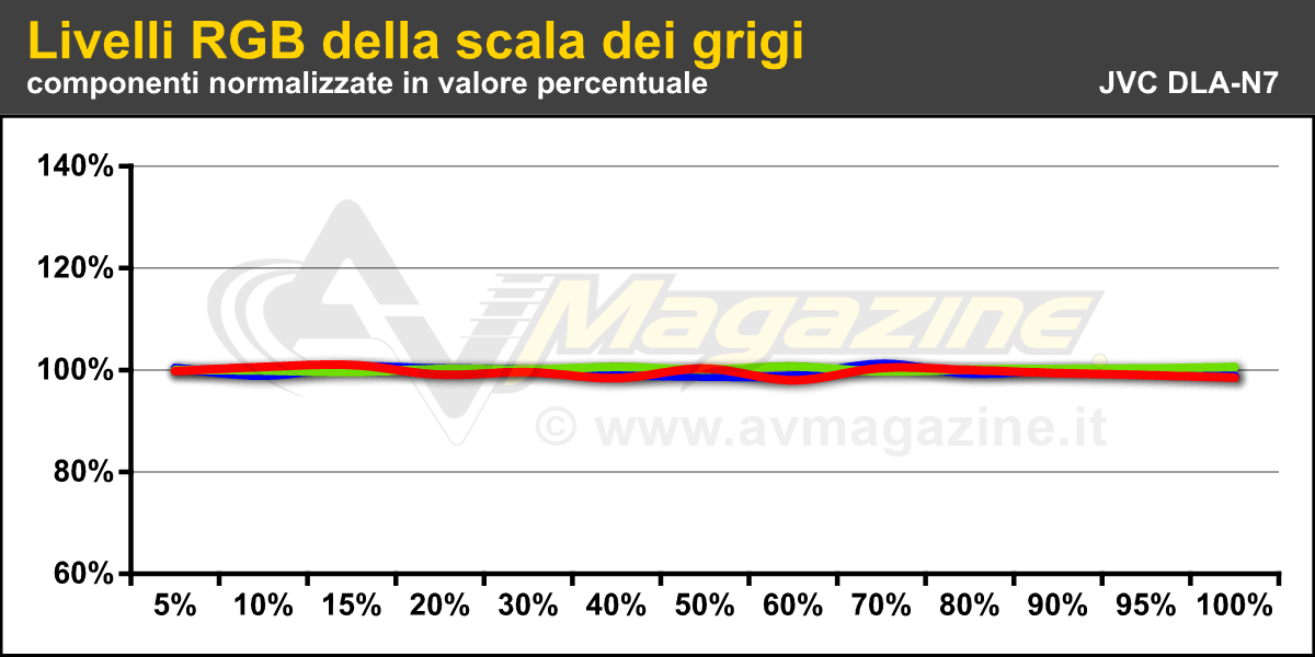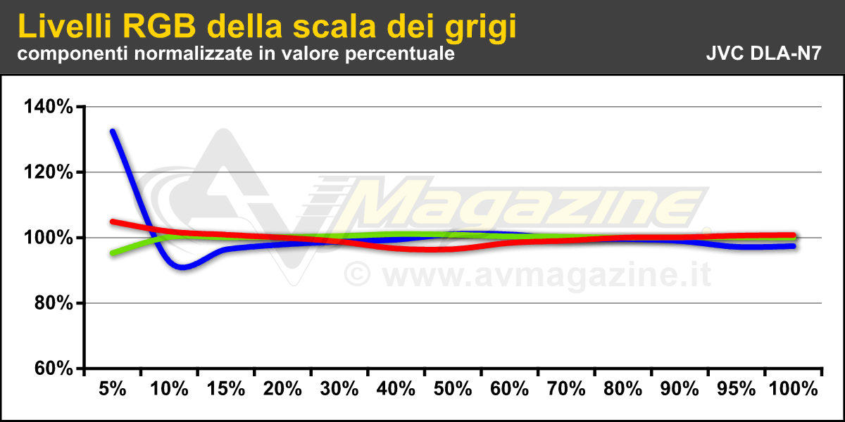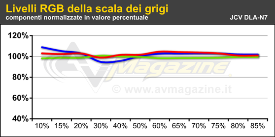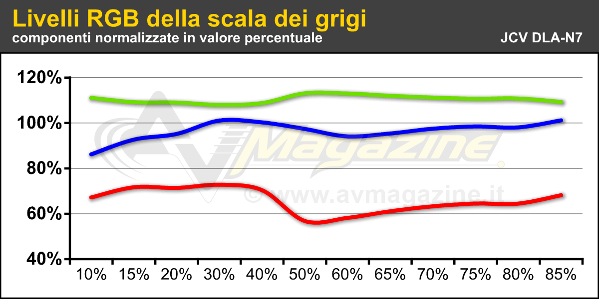 Prima di tutto ho verificato cosa è possibile fare con il menu utente e soltanto in un secondo momento ho sfruttato la calibrazione del gamma per le singole componenti RGB dal software di controllo che è possibile scaricare gratuitamente dal sito JVC. In questa occasione non ho verificato il software per la calibrazione semi-automatica, sia per mancanza di tempo, sia per non rischiare di pregiudicare il lavoro per eventuali bachi software: per questa verifica ho in mente un approfondimento, da realizzare con un test di entrambi gli strumenti di misura possibili, quindi "Datacolor Spyder 5" e anche Xrite "i1 Pro 2", con un "golden sample" del DLA-N5 che dovrei analizzare a breve.