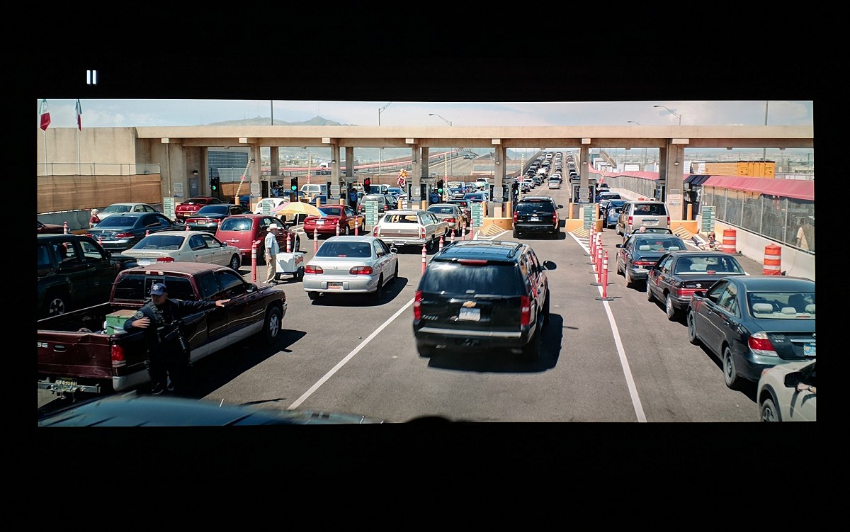 Le misurazioni effettuate sul flusso luminoso prodotto dalla macchina hanno evidenziato 1.104 lumen al lordo della calibrazione. Il bilanciamento del bianco pre-calibrazione era un po' verdino ma, anche soltanto con la calibrazione su due punti, è stato semplicissimo arrivare alla perfezione, con "Delta E 2000" sempre inferiore a 2. Il rapporto di contrasto misurato in queste condizioni è di 910:1. Con lo spettrometro xrite i1Pro 2 e Calman 6 Ultimate, è stato riscontrato un 96,6% di copertura dello spazio colore DCI-P3 rispetto al 98% dichiarato, il che si spiega sia con l'incertezza di misura dello spettrometro di xrite, con la tolleranza di produzione e, soprattutto, con lo schermo di proiezione. La figura dello spettro delle componenti RGB mostra senza dubbio le campane molto strette di rosso e blu e la campana più larga della componente verde ottenuta con i fosfori. La riproduzione dei colori è spettacolare, soprattutto dopo la calibrazione (del bianco e dei colori). Il Delta E 2000 prima della calibrazione è abbastanza alto, con incarnato che tende leggermente al giallo-verde, a causa del bilanciamento del bianco di fabbrica che abbiamo mostrato poco sopra. Con la calibrazione invece gli errori scendono ad un livello tale che risulta praticamente invisibile all'occhio umano percepire differenze rispetto al riferimento. Ed ora passiamo alla visione...