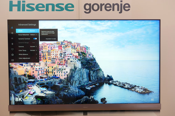 Se ne parla da più di vent'anni ma dovrà passare ancora qualche mese perché possa iniziare a far parte del nostro quotidiano. Esattamente come è stato per l'alta definizione e per il 4K, anche per il formato 8K arrivano prima i TV che i contenuti. Nel frattempo, nell'attesa della XXXII edizione dei giochi olimpici che saranno trasmessi in 8K anche in Euripa, con un po' d'invidia per chi abita in Giappone che può contare già su parecchie ore di palinsesto, nel resto del mondo i contenuti a risoluzione 8K sono per quantità e qualità esattamente gli stessi a cui eravamo abituati all'inizio dell'era del 4K, ovvero molto pochi e con qualità che solo raramente è adeguata alle aspettative. Samsung ha iniziato lo scorso anno (qui il nostro test del QE75Q900R) ed oggi è già alla seconda generazione di TV, con qualità, prestazioni e versatilità che sono ai vertici di questa piccola categoria che, nei prossimi mesi, vedrà ingrossare le proprie fila, ad iniziare da Sony che da questo mese arriverà in pochi e selezionati punti vendita con l'esemplare 8K da 85 pollici (potete leggere il test del Sony KD-85ZG9 in questo articolo). Entro la fine dell'estate arriverà anche LG con il suo OLED da 88" e probabilmente altri brand seguiranno con differenti declinazioni del pannello di LG Display. In questo senso la prossima edizione dell'IFA, prevista a Berlino dal 6 all'11 settembre, sarà un appuntamento fondamentale. In occasione dell'ultima Global Press Conference di IFA, tra un frigorifero e una lavatrice, anche quest'anno non sono mancate le novità in tema di TV di qualità, con ospiti del calibro di TCL, Metz e Hisense. Quest'ultima ha portato l'ultimo prototipo di TV a risoluzione 8K con pannello LCD con tecnologia Quantum Dots, gamut DCI e volume colore elevato, luminanza massima di 2.000 NIT e local dimming con ben 5.000 zone (cinquemila!). Si tratta purtroppo di un prototipo e, da come potrete vedere nelle immagini, il TV era installato in un ambiente ben illuminato. Impossibile anche effettuare qualsiasi tipo di misura, sia perché il TV era un prototipo piuttosto acerbo (firmware 0.01A), sia perché - sempre a proposito di prototipo - Hisense non poteva garantire un minimo livello qualitativo. Aggiungo però che alcuni aspetti della qualità d'immagine erano ai miei occhi estremamente interessanti. Sul display appariva soltanto un time-lapse in 8K a 30 fotogrammi al secondo, con durata di circa 90 secondi e in riproduzione continua, attraverso un player nascosto dietro il TV e collegato con quest'ultimo attraverso un cavo HDMI. In ogni modo, la potenza luminosa sembra in linea con i dati dichiarati, ovvero 2.000 NIT come luminanza di picco. Anche il gamut colore sembra in linea con le attese, soprattutto sul vertice rosso. Sfumature, rapporto di contrasto e livello del nero sono ingiudicabili a causa dell'ambiente, così luminoso da rendere necessari degli occhiali da sole. Il menu di calibrazione delle immagini è quello "classico" di molti TV Hisense e prevede la calibrazione del punto del bianco su 2 punti (alte luci e basse luci), con calibrazione dei sei colori principali (primari e secondari) per tinta, livello e saturazione. Il TV è dotato della piattaforma "smart" proprietaria VIDAA rev 2 ma il prodotto finale dovrebbe essere dotato della versione 3 con funzioni di intelligenza artificiale, in più il sistema operativo può contare su una ROM di ben 32GB. La versione definitiva dovrebbe essere in mostra il prossimo 6 settembre a Berlino, in occasione dell'IFA e dovrebbe poi raggiungere il mercato cinese e soltanto in un secondo tempo quello europeo. Tra prototipi con pannello Dual-Cell e questo nuovo TV 8K con local dimming da ben 5.000 zone, Hisense sembra pronta a sfidare i più grandi produttori di TV anche dal punto di vista della qualità assoluta e delle innovazioni tecnologiche. Per maggiori informazioni sui prodotti Hisense: hisenseitalia.it
