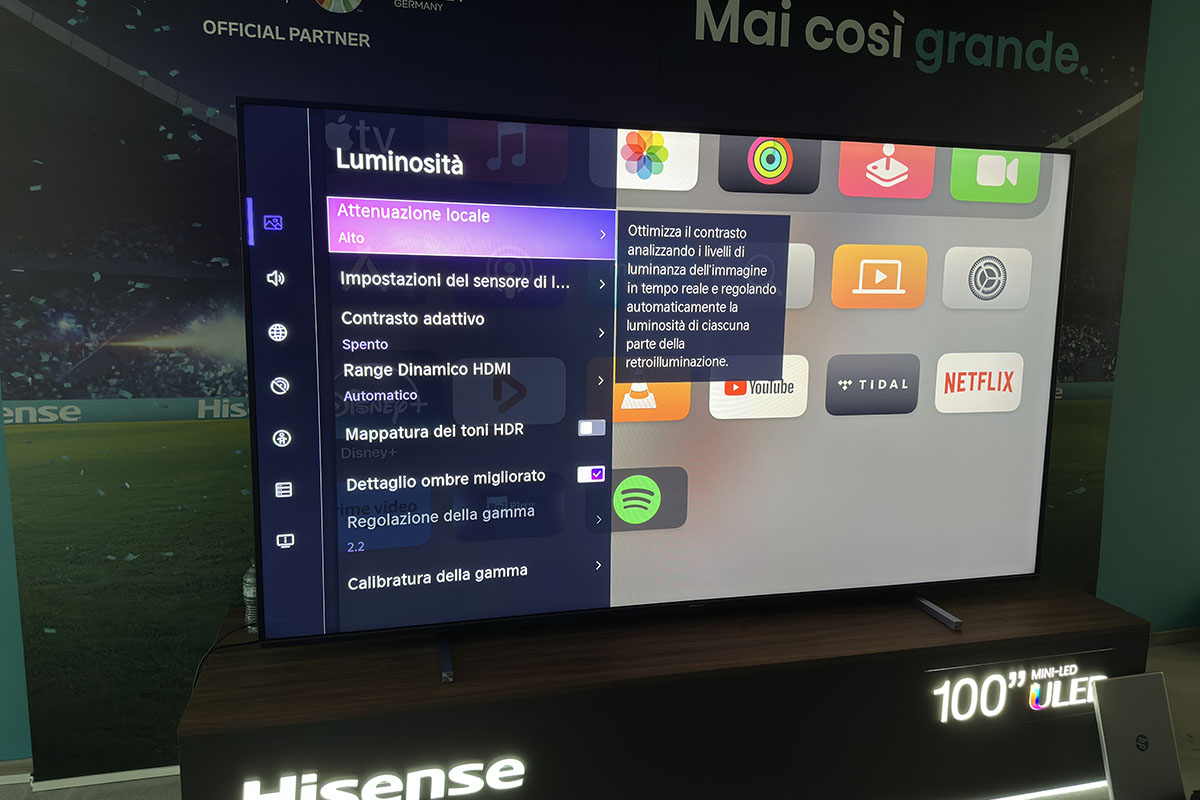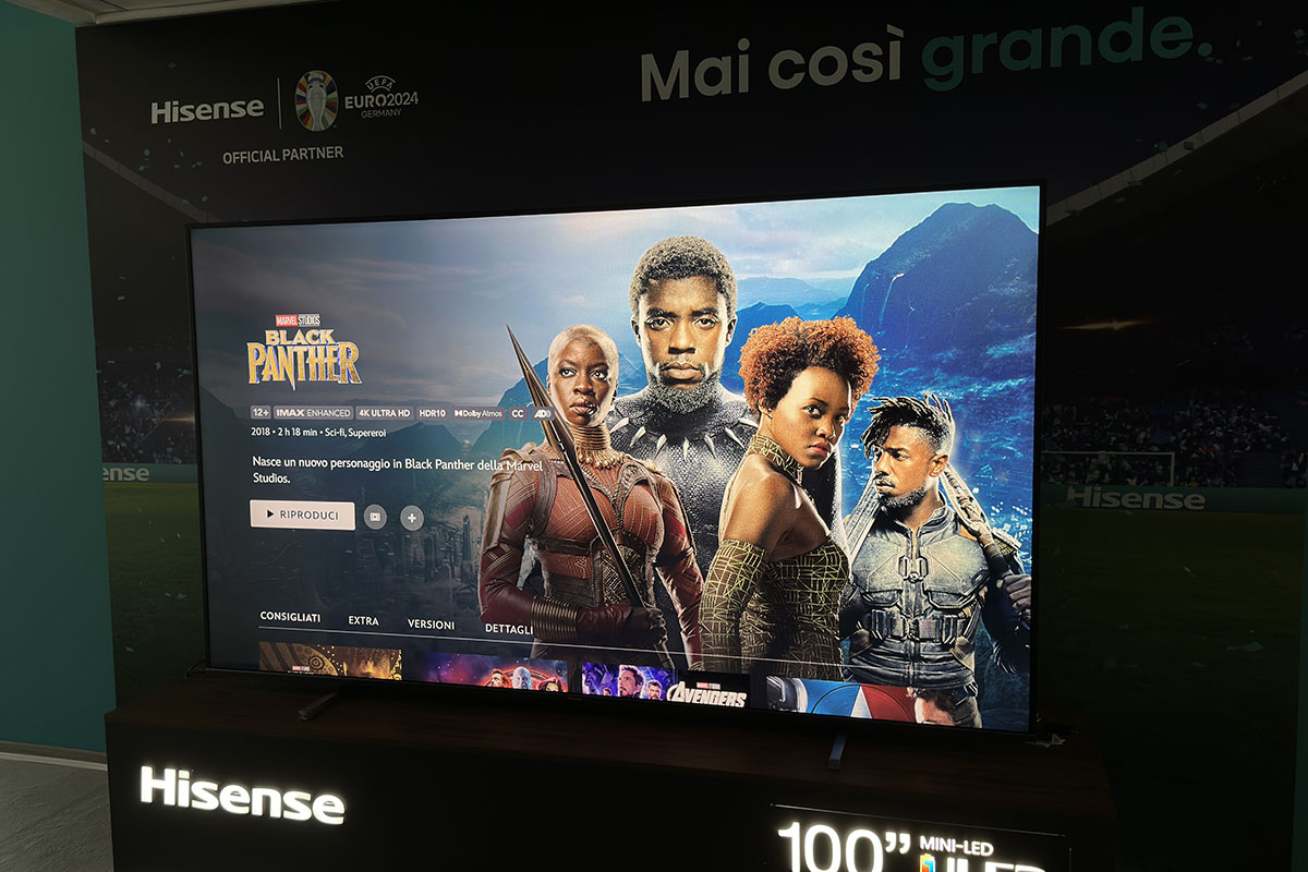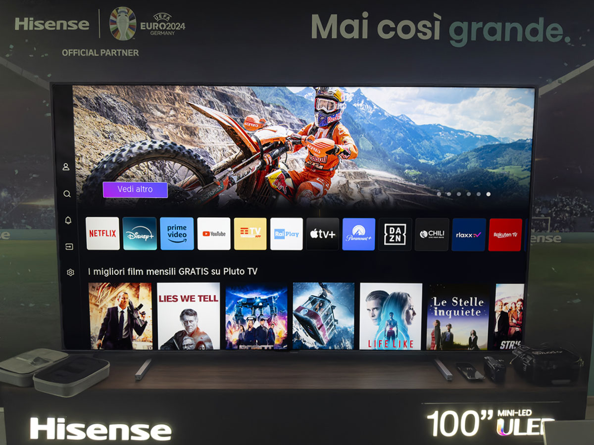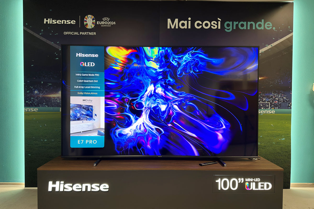 I televisori con schermi extra-large sono sempre più diffusi, come testimoniato dai numerosi articoli che abbiamo dedicato a questo segmento nel corso degli ultimi anni: La disponibilità sempre più ampia di pannelli da 100” (circa) e oltre ha permesso di aumentare la produzione e di diminuire anche i prezzi, tanto che ormai si può acquistare un prodotto con dimensioni da home cinema a prezzi impensabili solo fino a 3 o 4 anni fa. In questo mercato in netta crescita, anche in Italia, si inserisce un nuovo prodotto Hisense, il 100” E7N Pro, una novità della gamma 2024 che ho potuto testare nella sede del marchio cinese a Milano. I motivi di interesse sono molti: si parte da un prezzo di listino molto aggressivo, 2.499 euro, e si prosegue poi con una dotazione di tutto rispetto, completa di Smart TV, SoC di ultima generazione e di un display che utilizza retroilluminazione Full LED. In questo articolo vi andrò a raccontare le impressioni che ho maturato, corroborate dalle misure rilevate e dall’esperienza accumulata con un altro modello Hisense 2024, la serie U7N della quale troverete a breve una recensione completa.