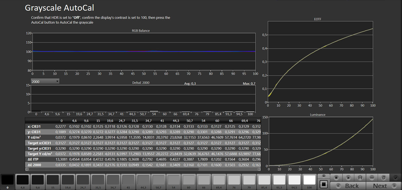 I controlli funzionano bene, ma è necessario fare attenzione agli effetti reciproci tra HDR e SDR: piccoli aggiustamenti da una parte possono risultare eccessivi dall’altra, specialmente quando si scende a soglie di errore molto basse. Serve un po’ di pazienza per ottenere la massima precisione.